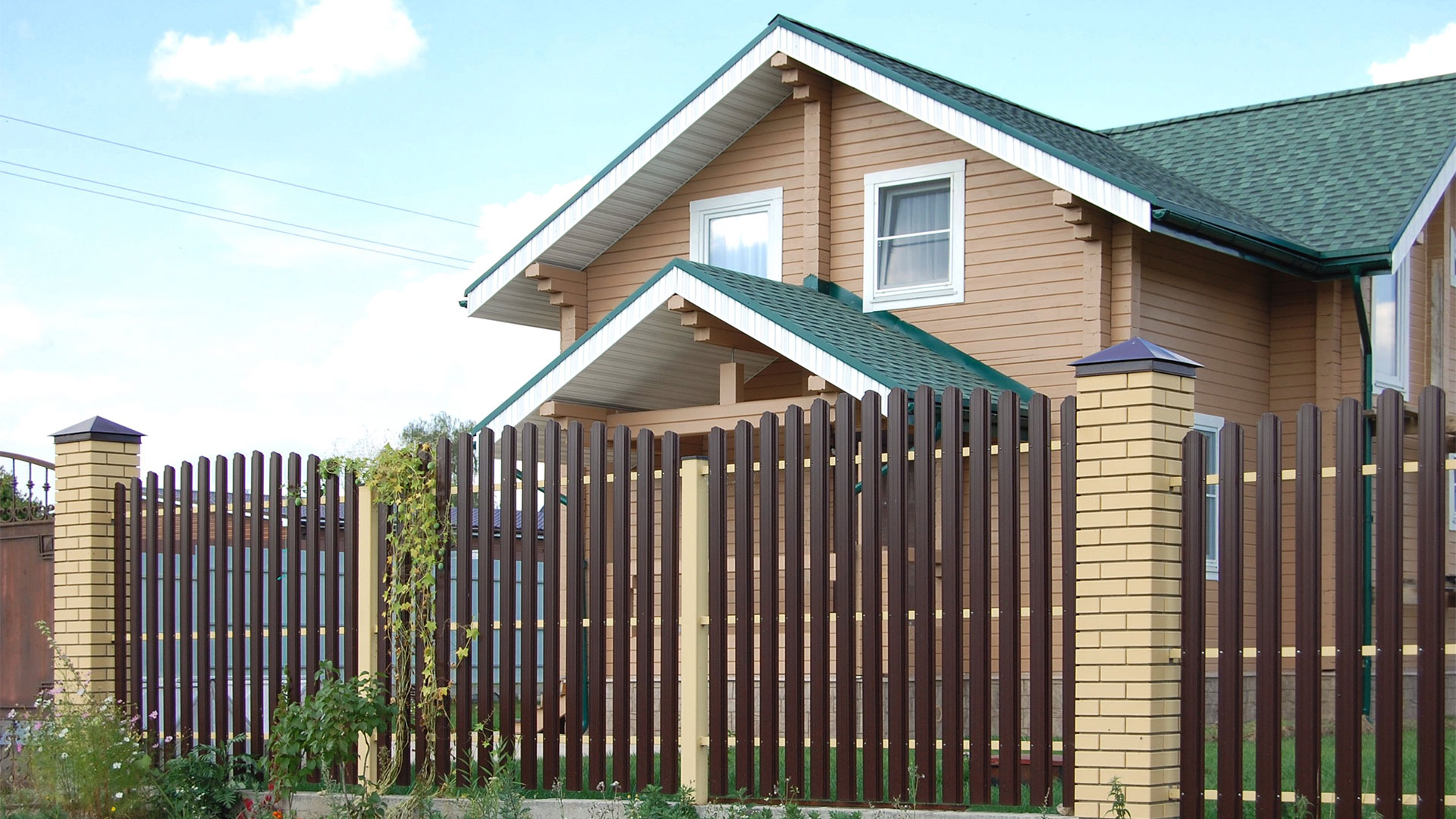 Заборы и ограждения из евроштакетника с кирпичными столбами 30 соток в Смоленске