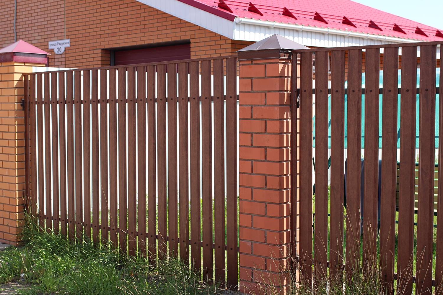 Заборы и ограждения из евроштакетника с кирпичными столбами 8 соток в Смоленске
