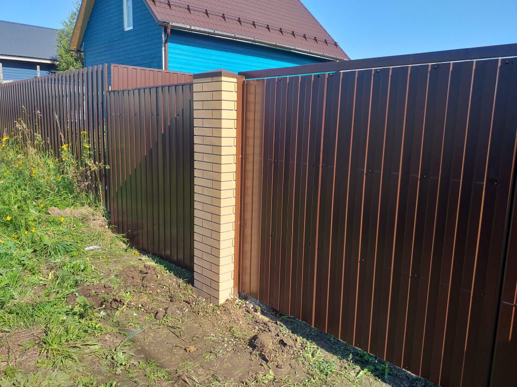 Заборы и ограждения из профнастила с кирпичными столбами 50 метров в Смоленске