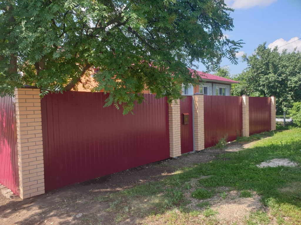 Заборы и ограждения из профнастила с кирпичными столбами 70 метров в Смоленске