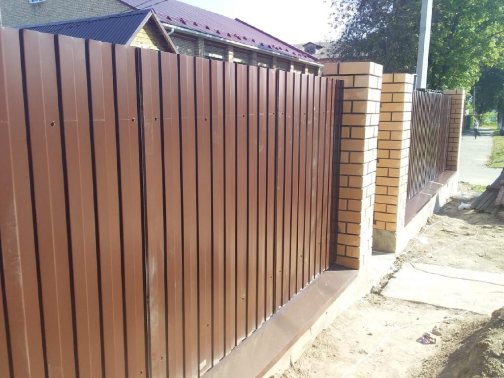 Заборы и ограждения из профнастила с кирпичными столбами 15 соток в Смоленске