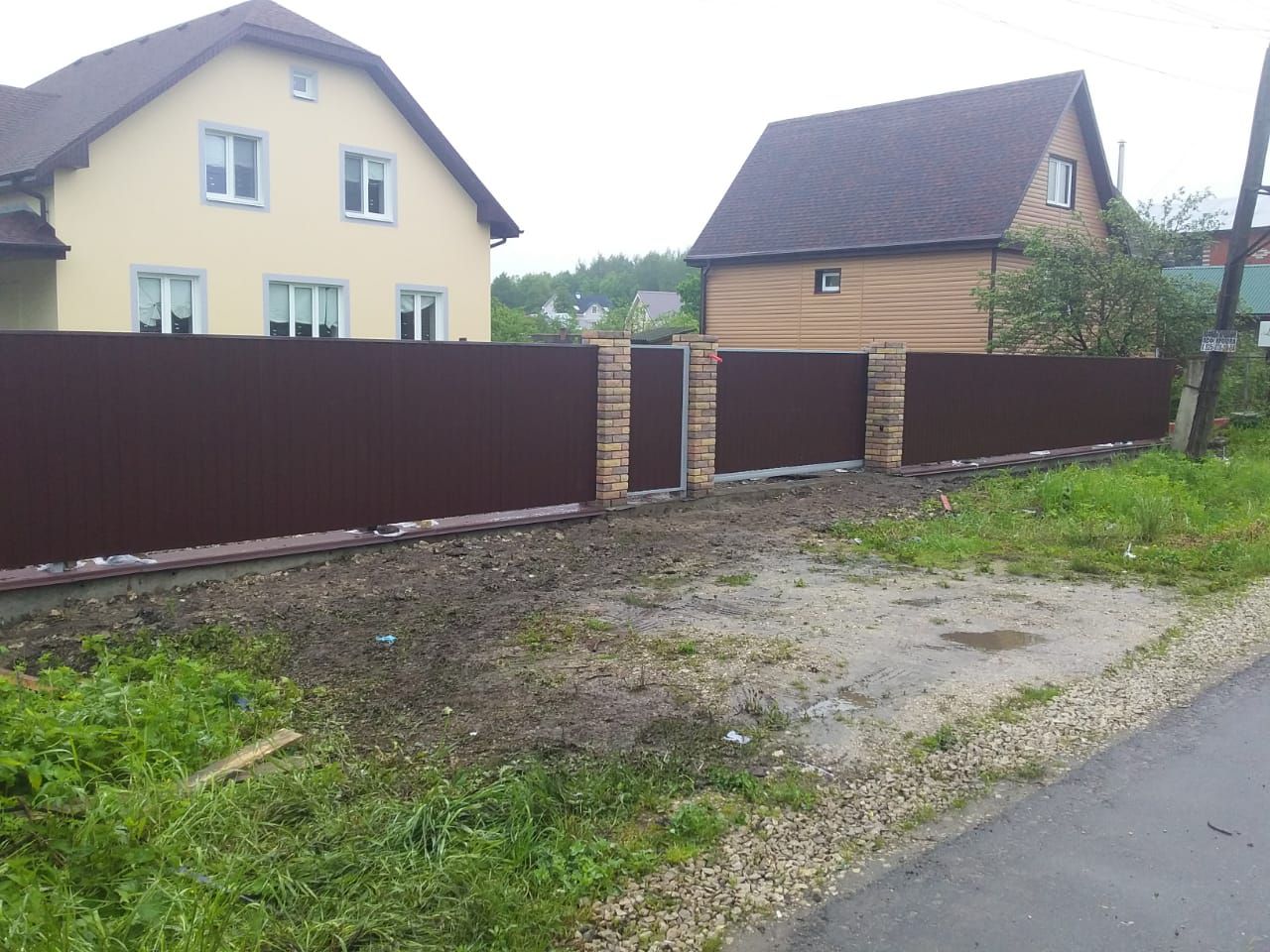 Заборы и ограждения из профнастила с кирпичными столбами 30 соток в Смоленске